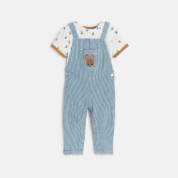 Длинный комбинезон в полоску и футболка «Кролик» синего...