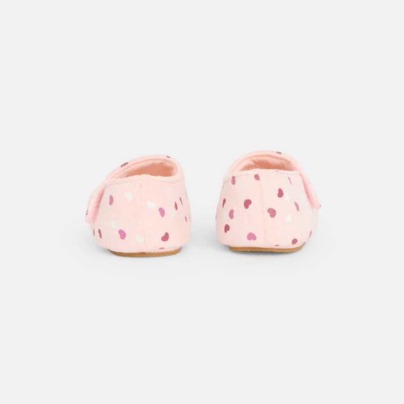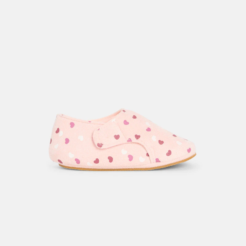 В этих мягких и уютных тапочках ноги вашей девочки будут в тепле. Застежка на липучке позволяет адаптироваться к любой ноге. Нескользящая подошва обеспечит безопасность с первых шагов.