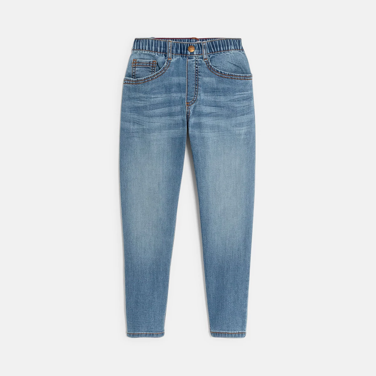 Клевый стиль и свобода движений. Эти джинсы с поясом на резинке одновременно стильные и комфортные, мальчики их просто обожают! Синий линялый деним. Широкий вверху и зауженный книзу крой. Регулируемый пояс полностью на резинке. Декоративная пробивная пуговица. 5 карманов.