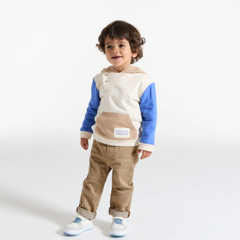 Комфортные джинсы из денима ультрастретч бежевого цвета для мальчика ясельного возраста