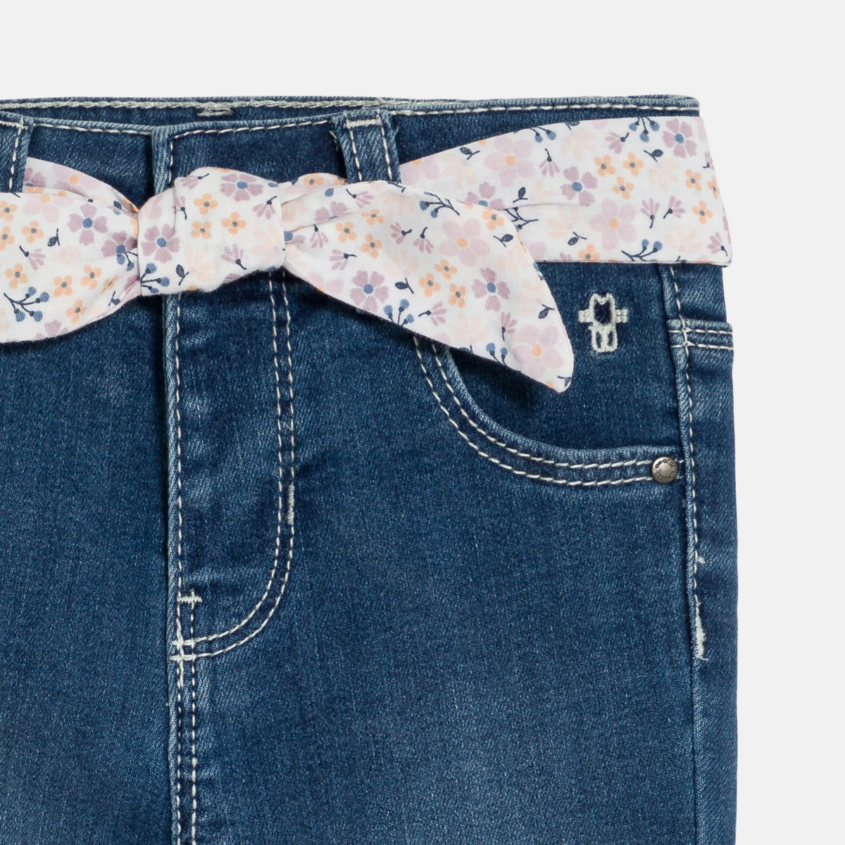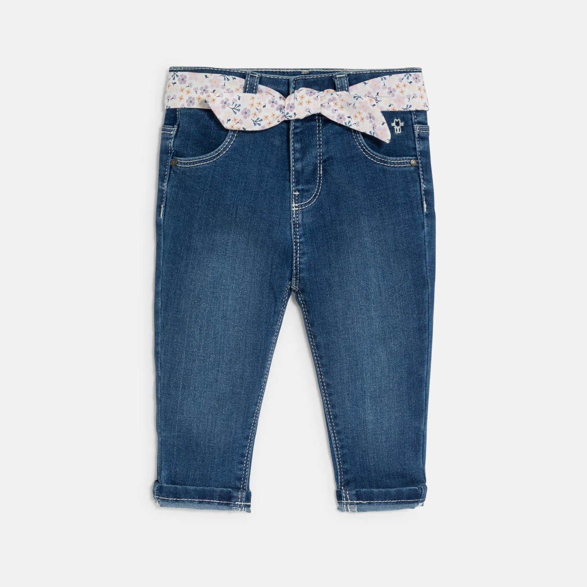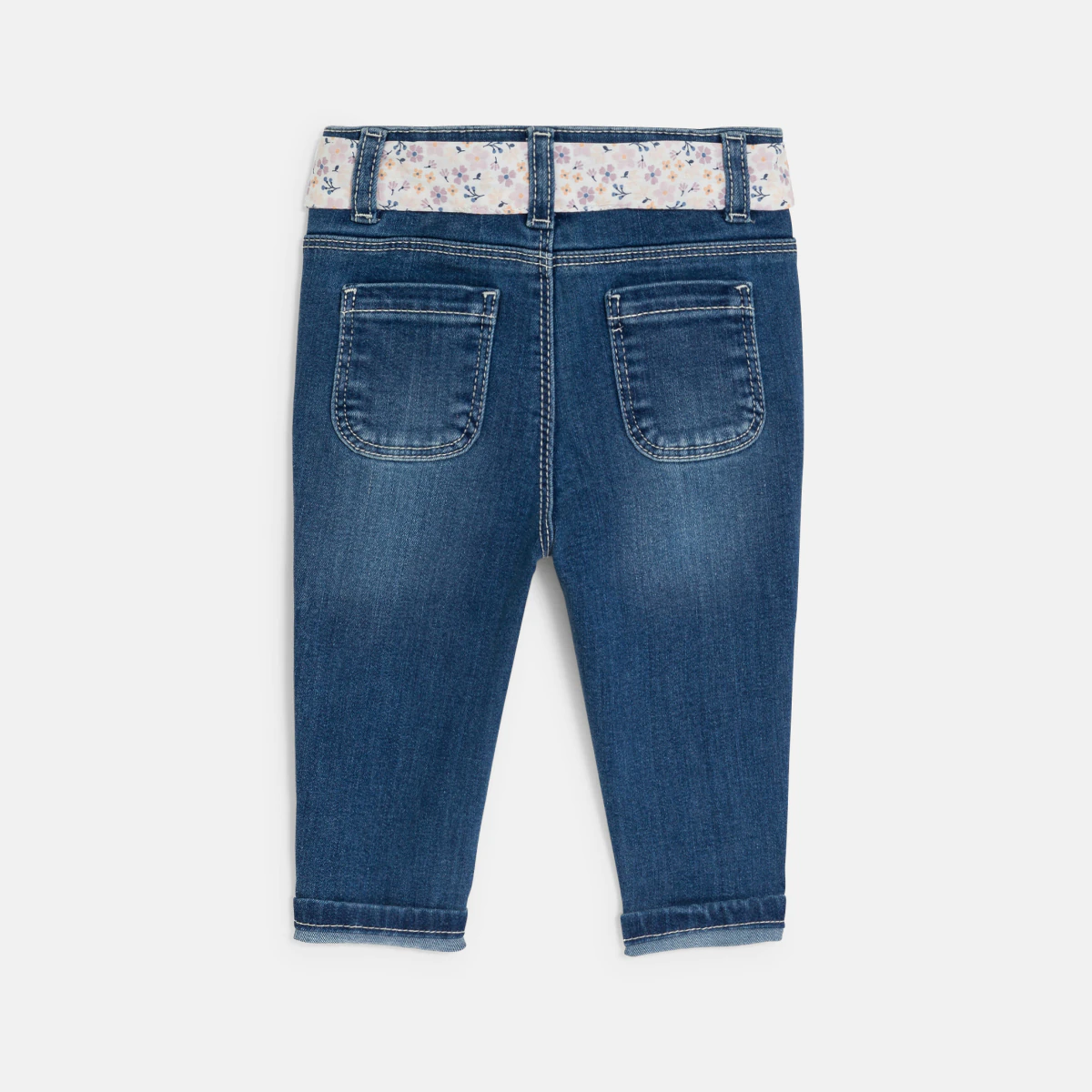 Прямые джинсы с поясом в цветочек синего цвета для новорожденной
