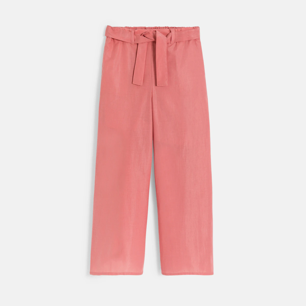 Эти широкие брюки нежной расцветки с красивыми переливами просто невероятны: они способны с легкостью сменить стиль с непринужденного на торжественный! Оформленный пояс спереди и на резинке сзади. Шлевки. Съемный пояс для завязывания. Прошивка в тон.