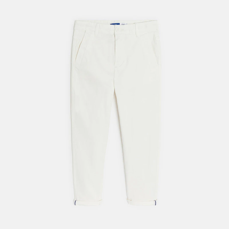 Эти брюки чинос из мягкой ткани нравятся мальчикам. Они всегда пригодятся: в школе, в важный день, на праздник... Застежка на пуговицу и молнию. Регулируемый пояс. 3 кармана. Регулируемые отвороты. Прошивка в тон.