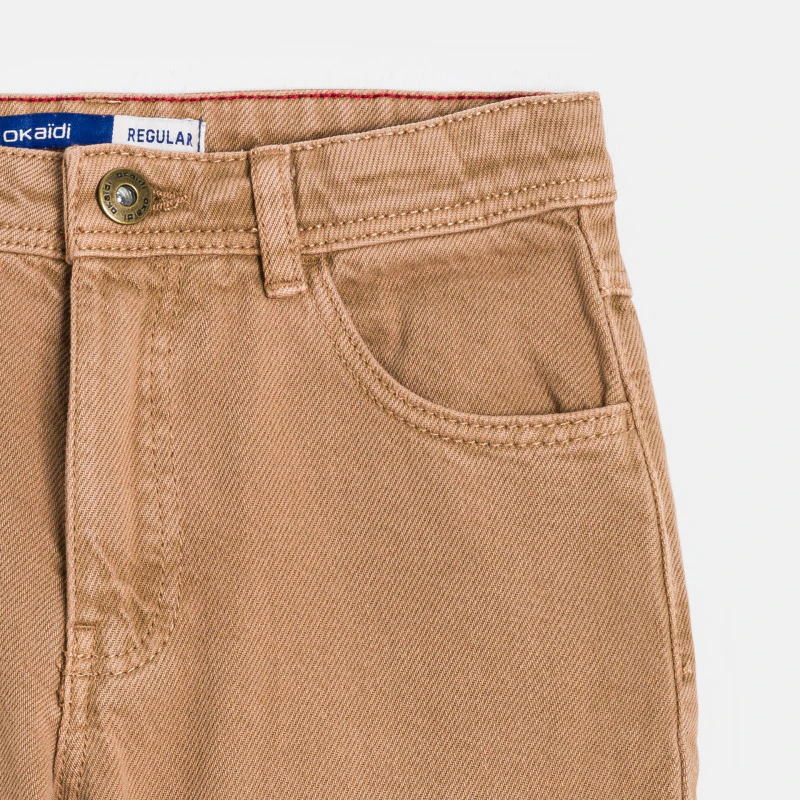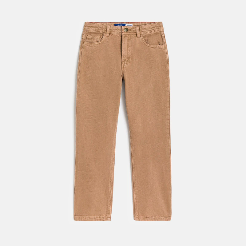 Прямые полотняные брюки светло-коричневого цвета для мальчика