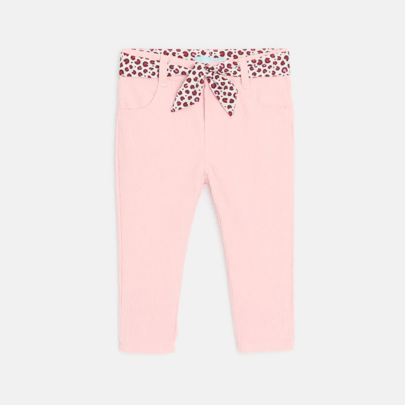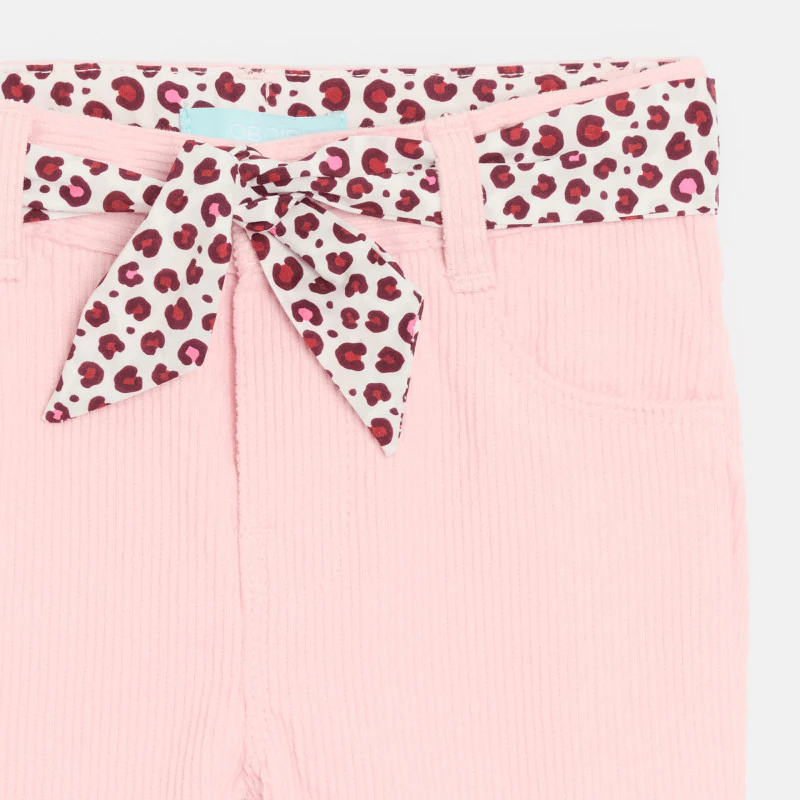 Брюки из вельвета с леопардовым поясом розового цвета для новорожденной