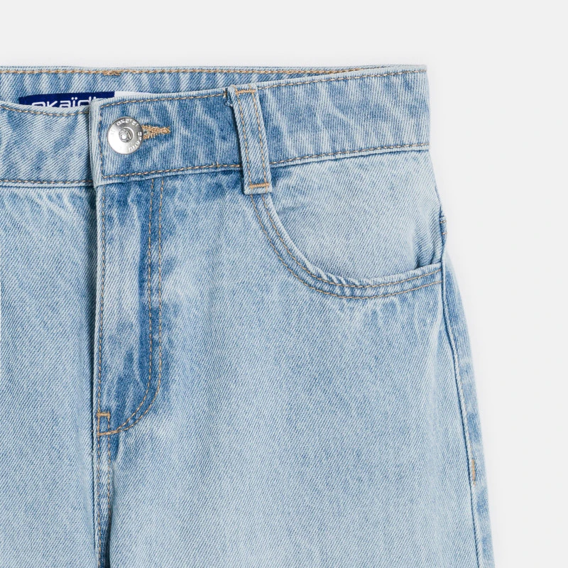 Широкие джинсы светло-синего цвета с линялым эффектом для девочки