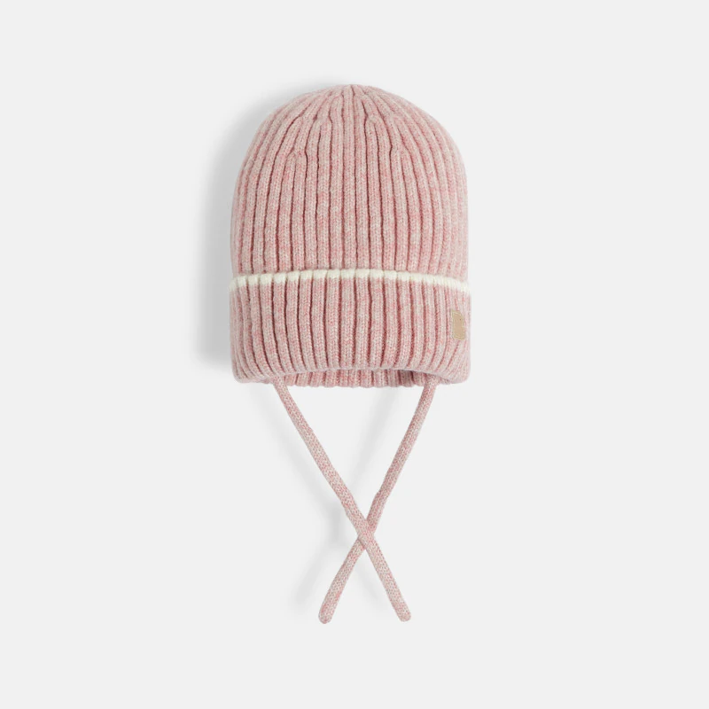 Эта теплая и удобная шапка из эластичного вязаного трикотажа в рубчик надежно защитит от холода голову вашей малышки. Широкий отворот и завязывающийся под подбородком шнурок, чтобы удерживать кепку на месте.