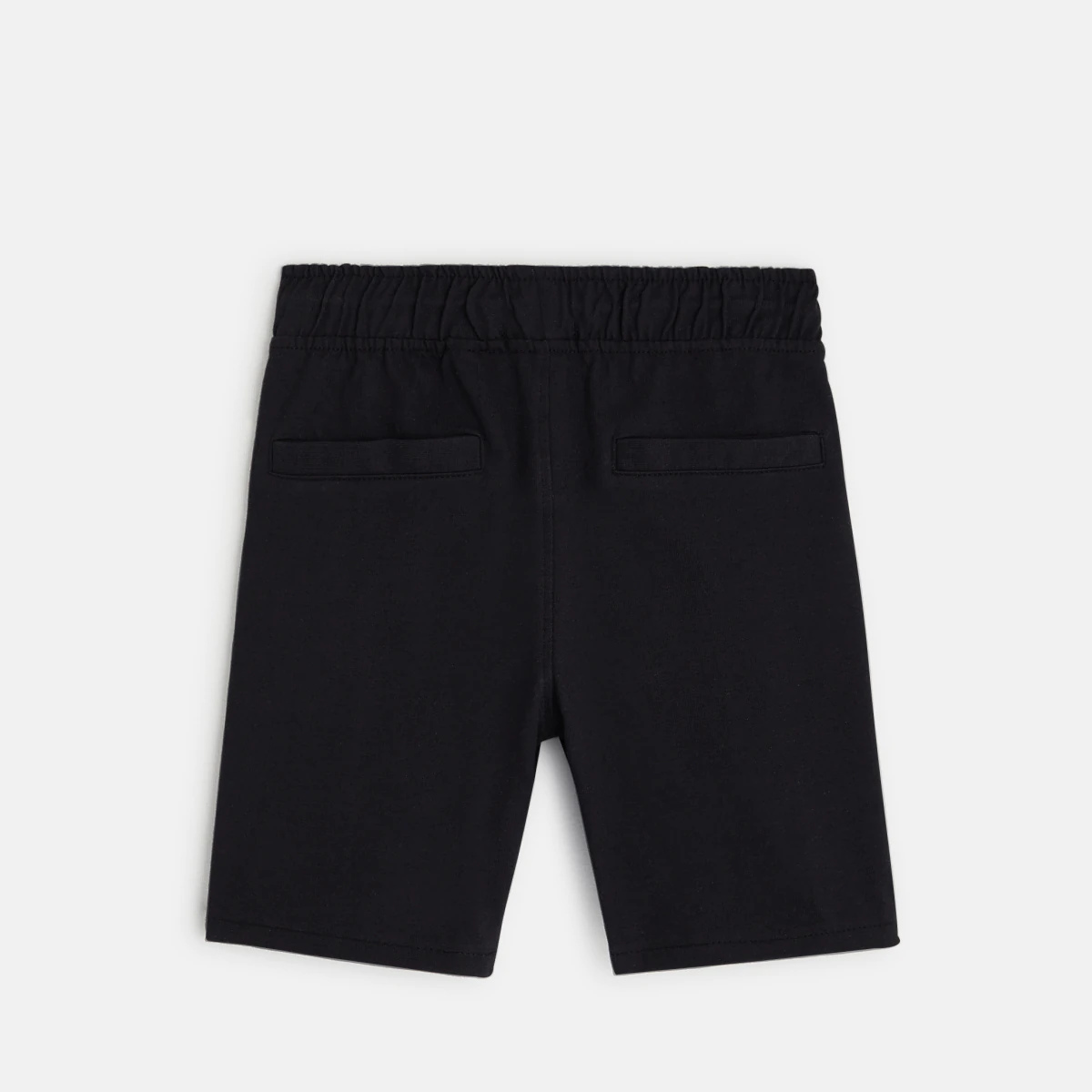 Шорты-бермуды для мальчика. Хлопковый трикотаж. Пояс на резинке со скользящим шнурком для завязывания. 2 косых кармана спереди. 2 ложных кармана сзади. Прошивка в тон. Небольшой логотип Okaïdi.
