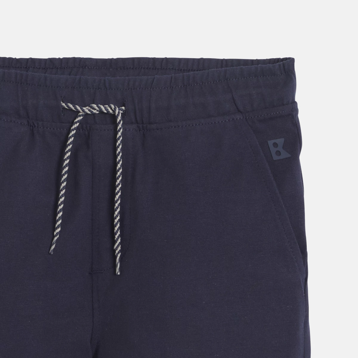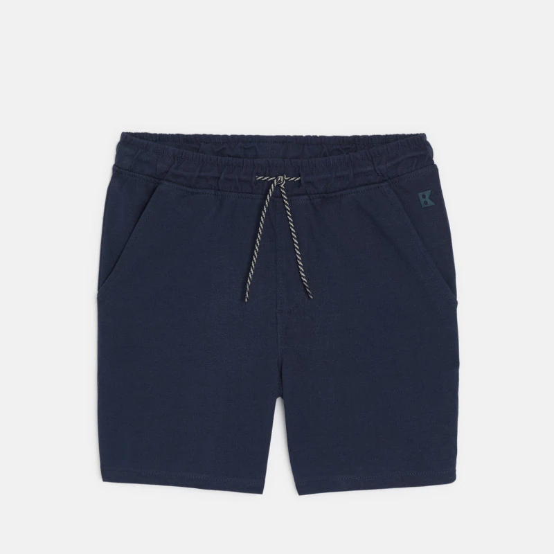 Шорты-бермуды для мальчика. Хлопковый трикотаж джерси. Пояс на резинке со скользящим шнурком для завязывания. 2 косых кармана спереди. 2 кармана-обманки сзади. Прошивка в тон. Небольшой логотип Okaïdi.