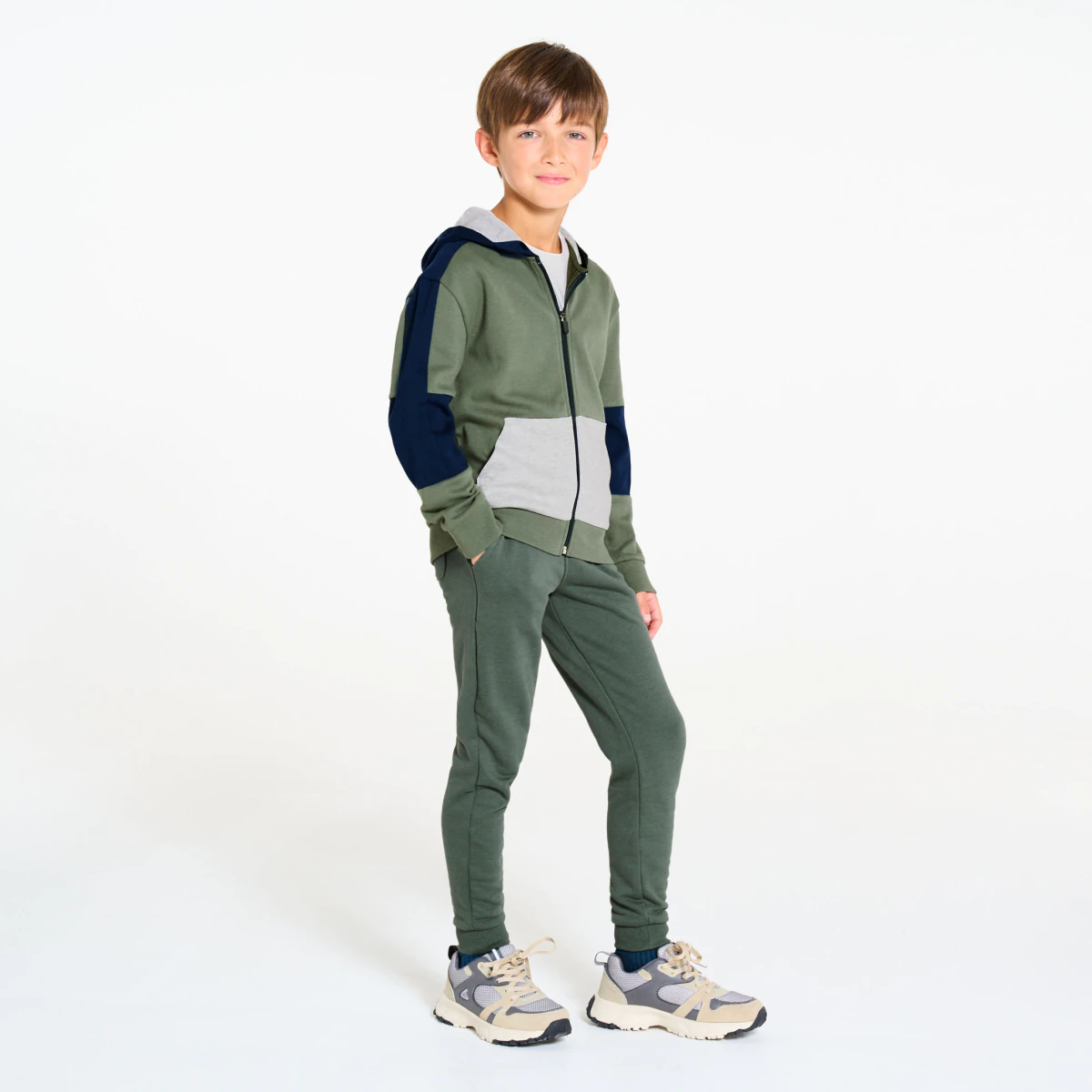 описание Эти однотонные спортивные штаны — базовая вещь: их приятно носить, у них спортивный стиль и в них всегда можно расслабиться! Буклированный внутри мольтон. Пояс на резинке в рубчик с металлическими люверсами и шнурком для затягивания и завязывания спереди. 2 косых кармана спереди. 1 карман сзади, принт в виде логотипа Okaïdi Sport.