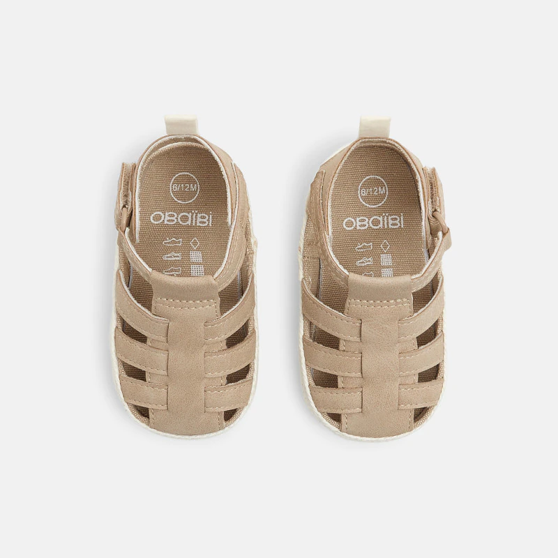 Первые сандалии для самых маленьких, с несколькими ремешками. Мягчайшая обувь, которая станет финальным штрихом мальчишеского образа Obaïbi. Застежка-липучка сбоку позволяет модели прочно держаться на месте.