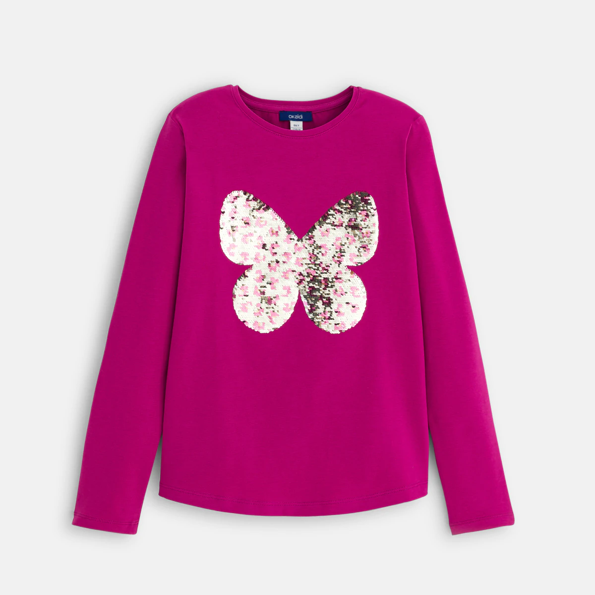 Розовая футболка с волшебными блестками «Бабочка» для девочки