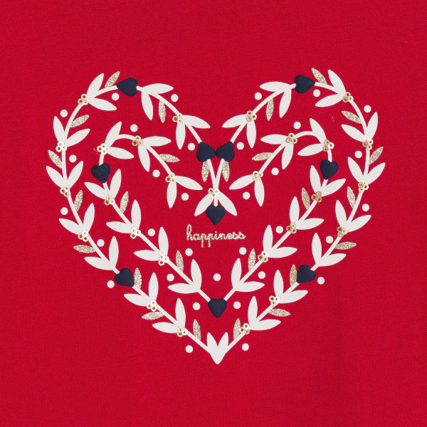 Футболка с узором «Сердце» красного цвета для девочки