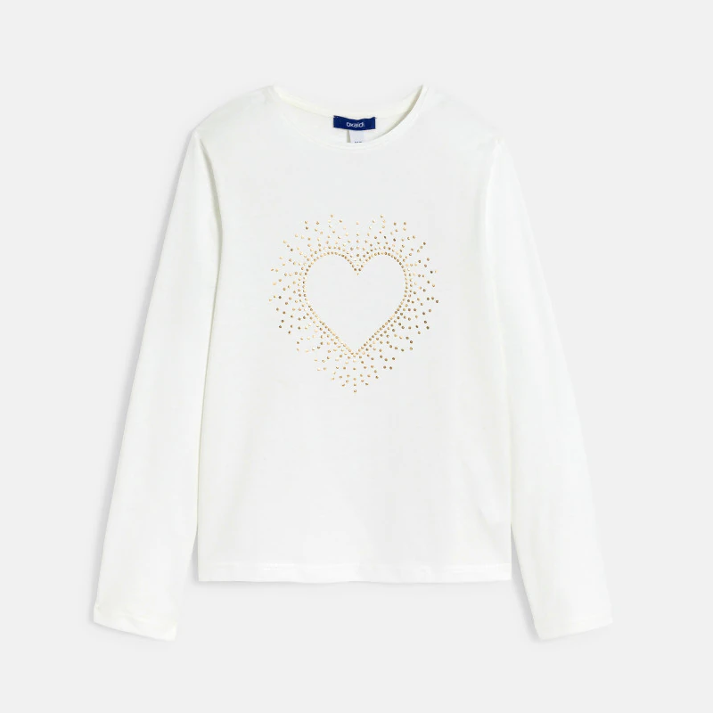 Белая футболка с золотистым рисунком «Сердце» для девочки