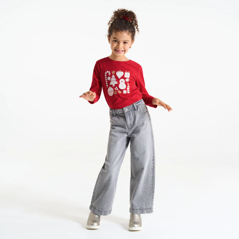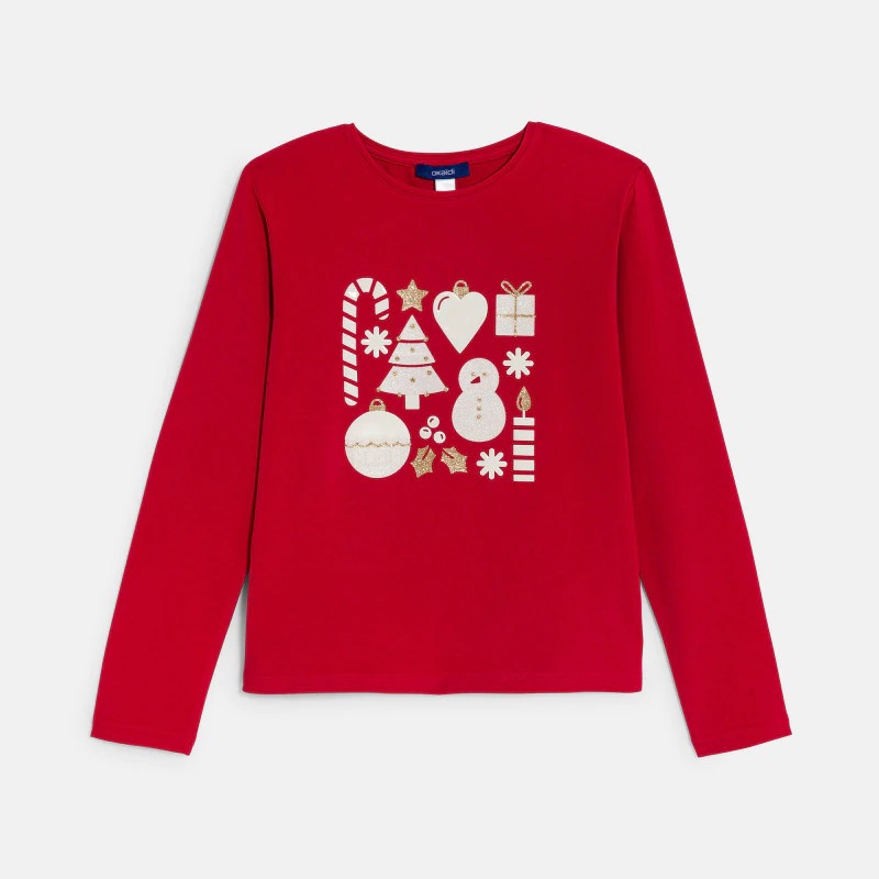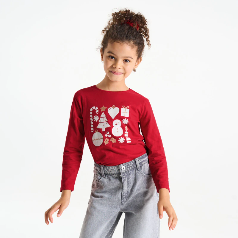Девочкам нравится думать о Рождестве до, во время и после праздников, поэтому они с радостью включат эту футболку в свой осенне-зимний гардероб. Мягкий и слегка тянущийся джерси. Прямой крой. Круглая горловина. Длинные рукава. Прямой низ. Прошивка в тон.
