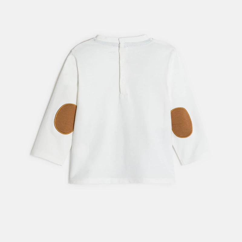Нашему другу-кролику на этой футболке с длинными рукавами срочно требуются объятия. Модель обязательно понравится малышам! У нее удобный прямой фасон с забавным контрастным рисунком, и она непременно должна быть в гардеробе каждого мальчика. Вставки на локтях и плечах. Кнопки сзади.
