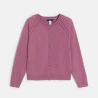 Этот кардиган — элегантная базовая вещь. Он сделан из мягкого тонкого трикотажа. Дополнительное достоинство: оригинальная ажурная отделка на рукавах реглан. Слегка зауженный книзу крой. Круглая горловина. Застежка на металлические пуговицы спереди. Длинные рукава. Прямой низ. Отделка трикотажной резинкой по краям.