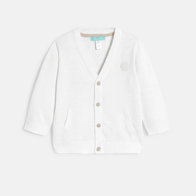 Кардиган из вязаного трикотажа белого цвета для мальчика ясельного возраста