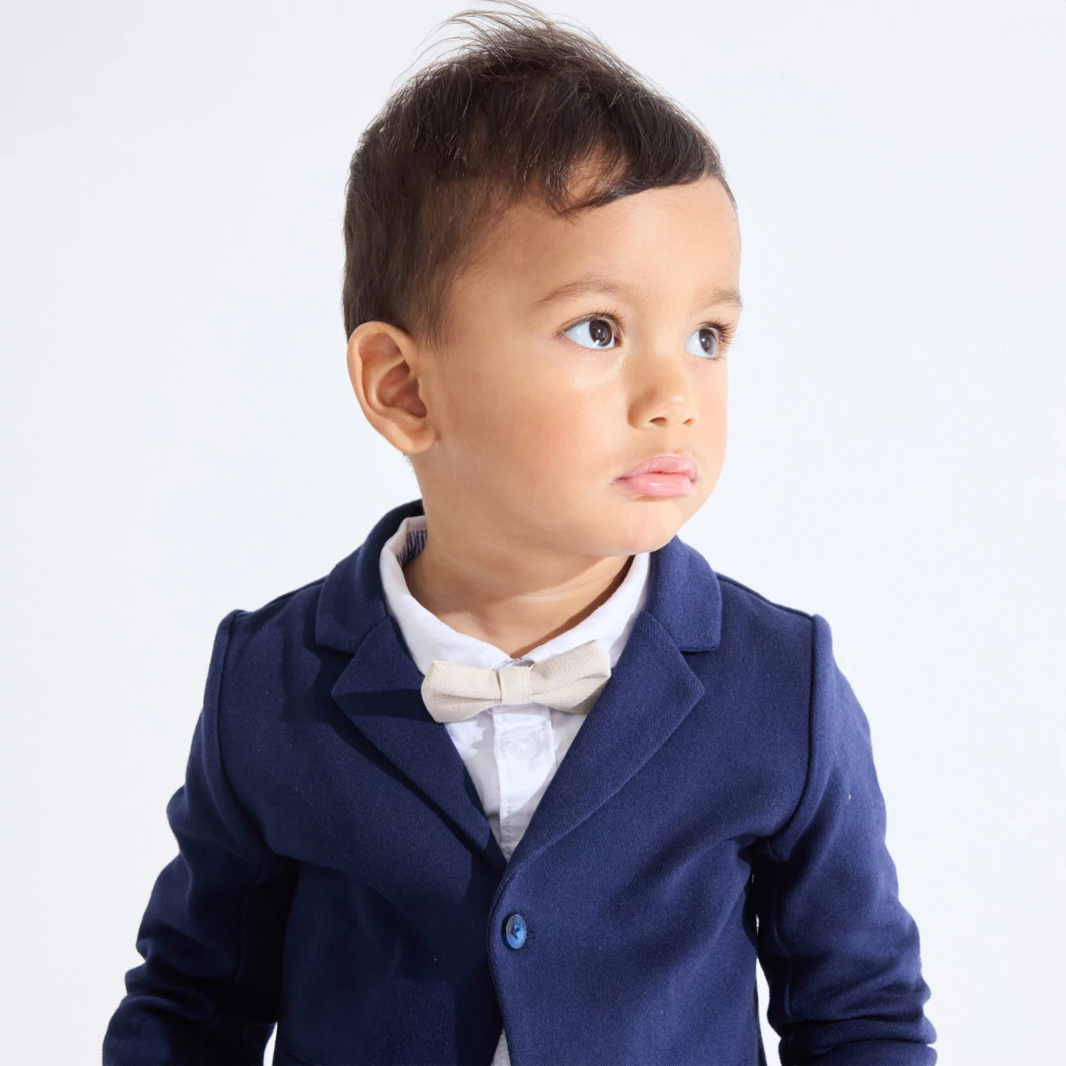 Этот мягкий непринужденный блейзер представляет собой совершенное сочетание стиля и комфорта. Это идеальная вещь на каждый день в гардеробе мальчика! Мягкий хлопковый трикотаж, застежка на пуговицы.