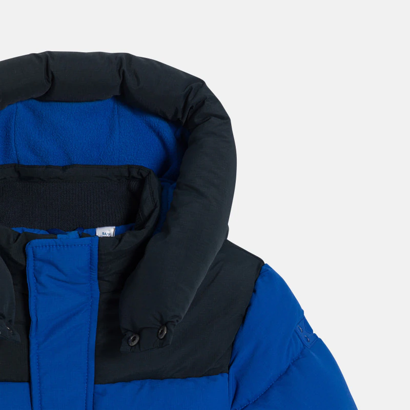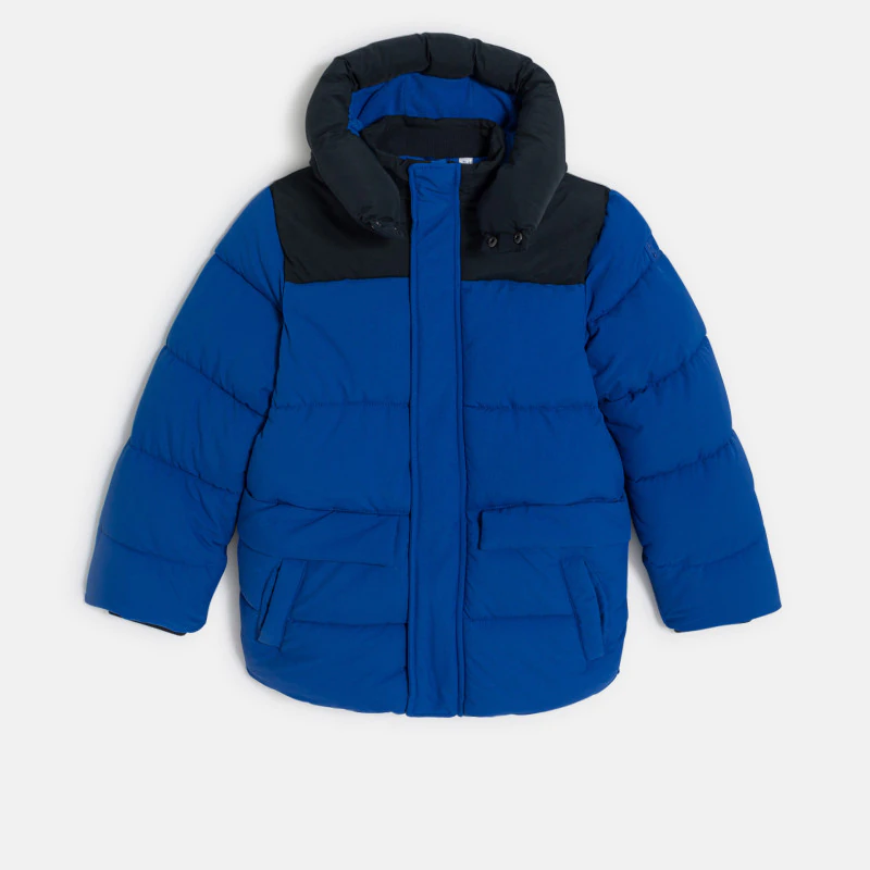 Она сохраняет тепло. Обеспечивает свободу движений. Подходит для города или деревни. Никаких сомнений: эта двухцветная куртка-пуховик отлично выполняет свою защитную функцию! Комфортная и водоотталкивающая. Застежка-молния под защитной планкой на кнопках. Высокий воротник. Капюшон с утеплителем. Длинные рукава, манжеты в рубчик. 4 кармана. Закругленный низ. Светоотражающие детали. Вешалка и именная этикетка внутри.