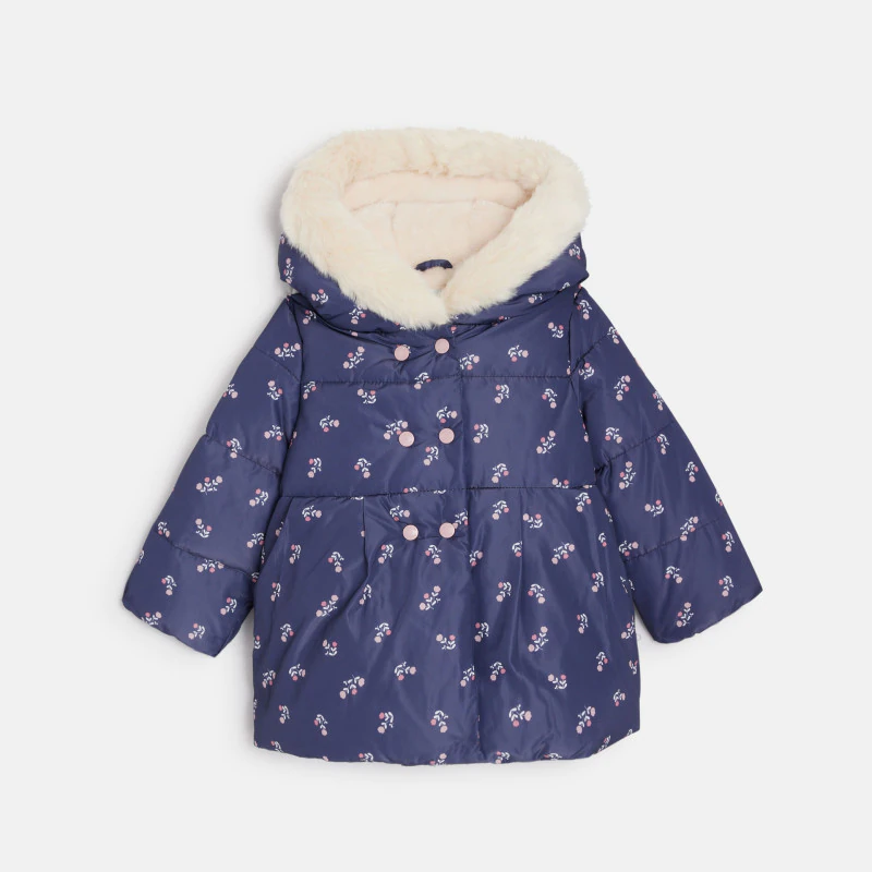 Эта стеганая куртка с подкладкой из мягкого бархата и капюшоном с окантовкой из искусственного меха окружит вашу малышку нежностью и теплом. Ее обволакивающий фасон и водоотталкивающая отделка защитят от холода, обеспечивая максимальный комфорт вплоть до -20°C. Застежка на молнию и кнопки.