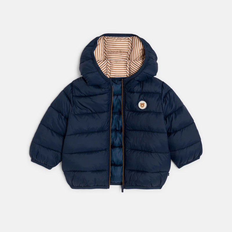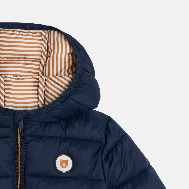 описание Этот стеганый пуховик с капюшоном окутывает уютом малыша и будет просто необходим с наступлением первых холодных дней. Застегивается на молнию, что облегчает процесс одевания ребенка, и защищает от дождя благодаря водоотталкивающей ткани. Вашему мальчику он придется по душе!