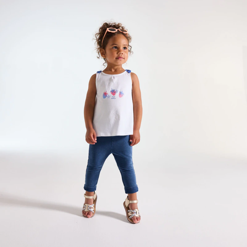 Вам понравятся детали этих легинсов с джинсовым эффектом, а их эластичный пояс с воланами приведет в восторг юных кокеток. Модель с удобным эластичным кроем, которую можно носить в качестве брюк или под юбку.