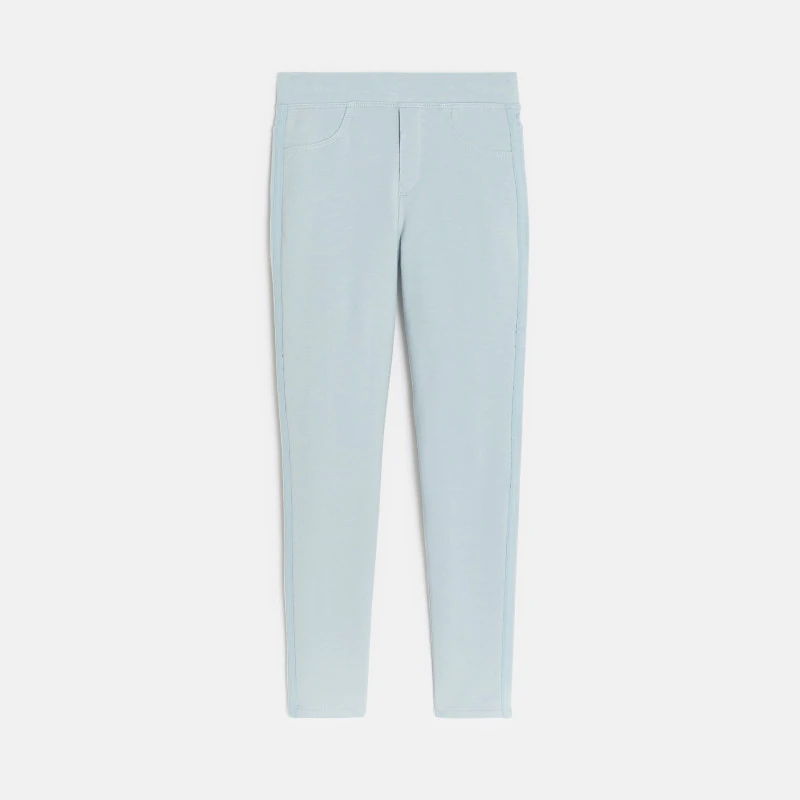 Однотонные небесно-синие джегинсы из джерси милано для девочки