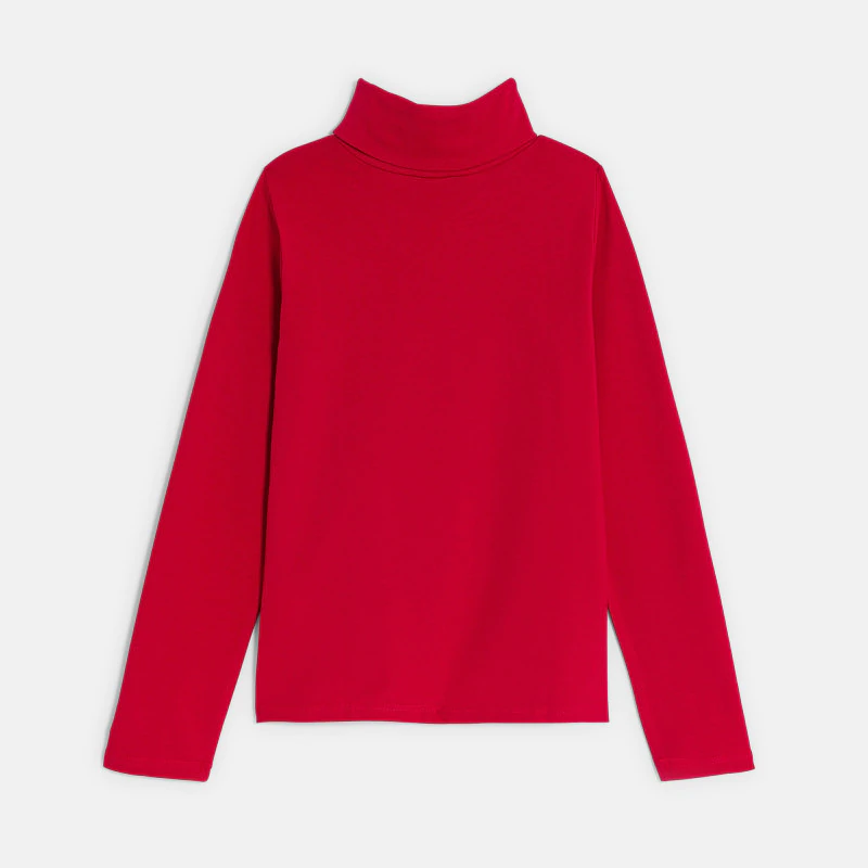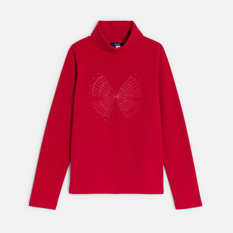 Футболка с высоким воротом и узором из пайеток красного цвета для девочки