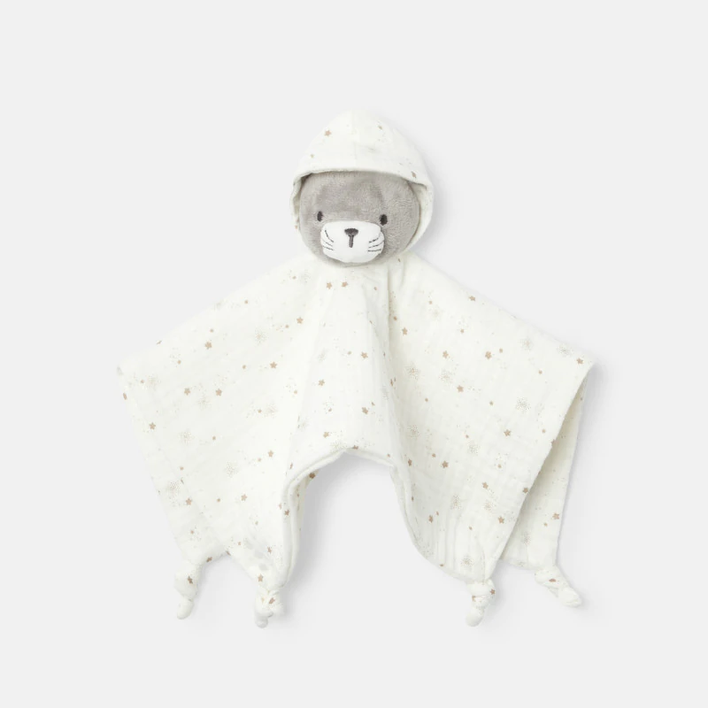 Плоская игрушка-комфортер «Кот» из бархата белого цвета со звездами для новорожденного