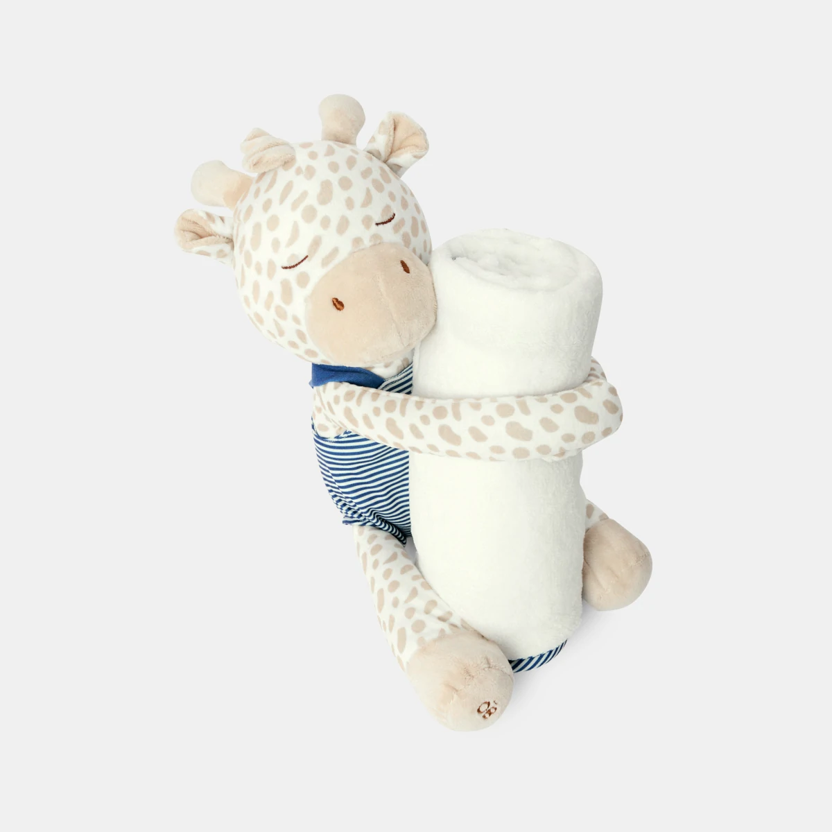 Этот бархатный жираф такой мягкий и нежный, что его объятия наверняка успокоят вашего малыша. Между ног он держит флисовый плед с отделкой в полоску, в который можно закутаться, чтобы согреться и ощутить комфорт. Плюшевая игрушка (высота примерно 23 см) с лапами на липучках. Флисовое одеяло: примерно 100 x 70 см.
