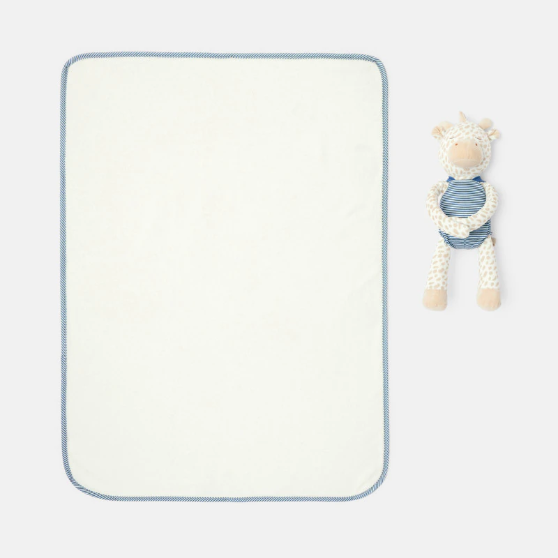 Плюшевая игрушка «Жираф» и флисовый плед белого цвета для новорожденного