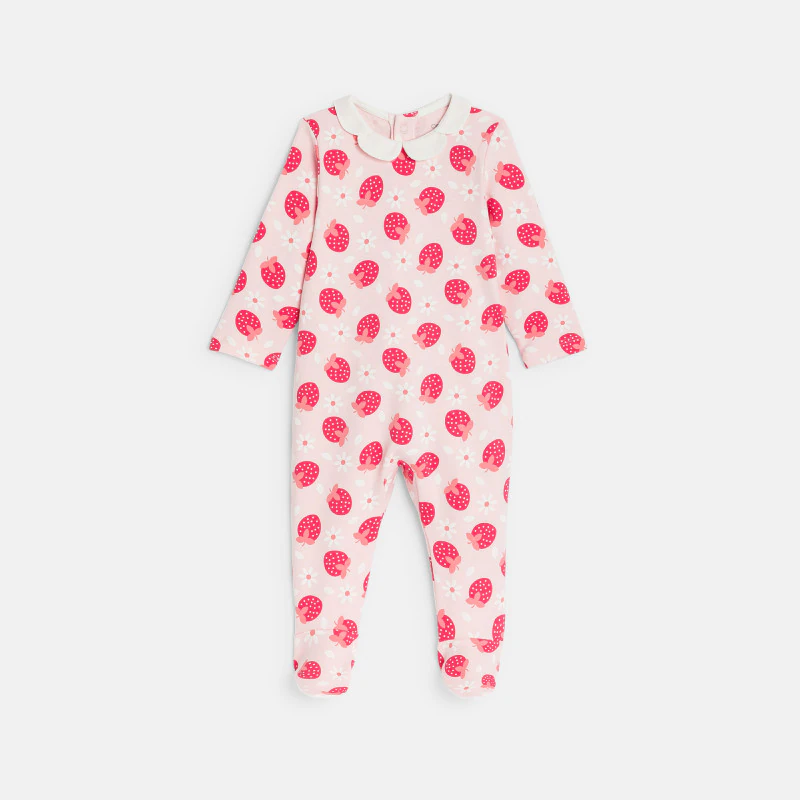 Пижама-комбинезон из интерлока с воротником в форме лепестков розового цвета «Клубника» для новорожденной