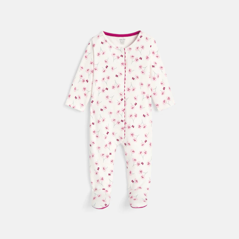 Маленьким романтичным девочкам понравится цветочный принт на этой пижаме. Слитная модель из мягкого трикотажа, которая согреет вашу девочку и подарит ей спокойный сон ночью. Застежка спереди, чтобы ребенка было легче одевать.
