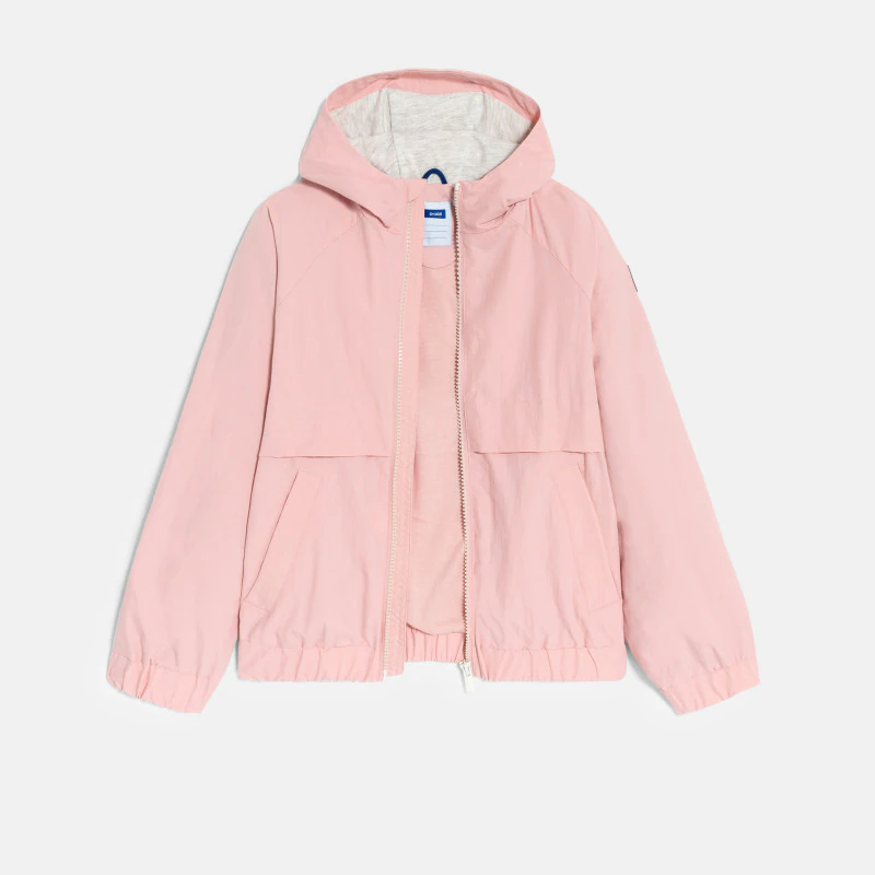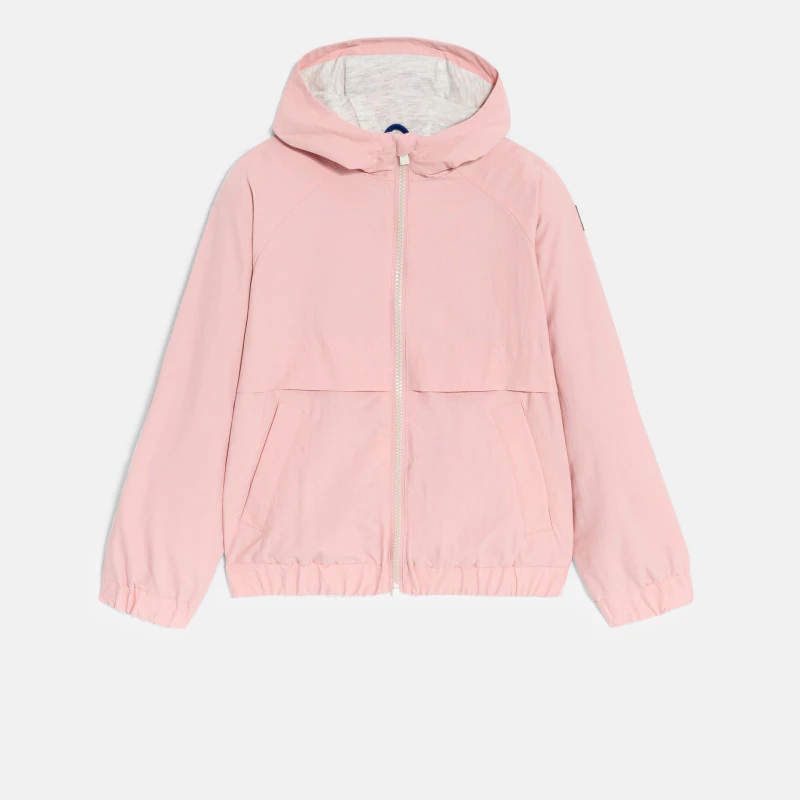 Незаменимая. Удобная. Практичная. Эта ветровка пастельно-розового цвета поможет противостоять капризам погоды, везде и всегда! Водоотталкивающая ткань. Подкладка из джерси. Прямой крой. Капюшон. Застежка-молния. 2 кармана. Длинные рукава, эмблема на одном рукаве. Низ и манжеты на резинке. Светоотражающие детали. Вешалка и именная этикетка внутри.