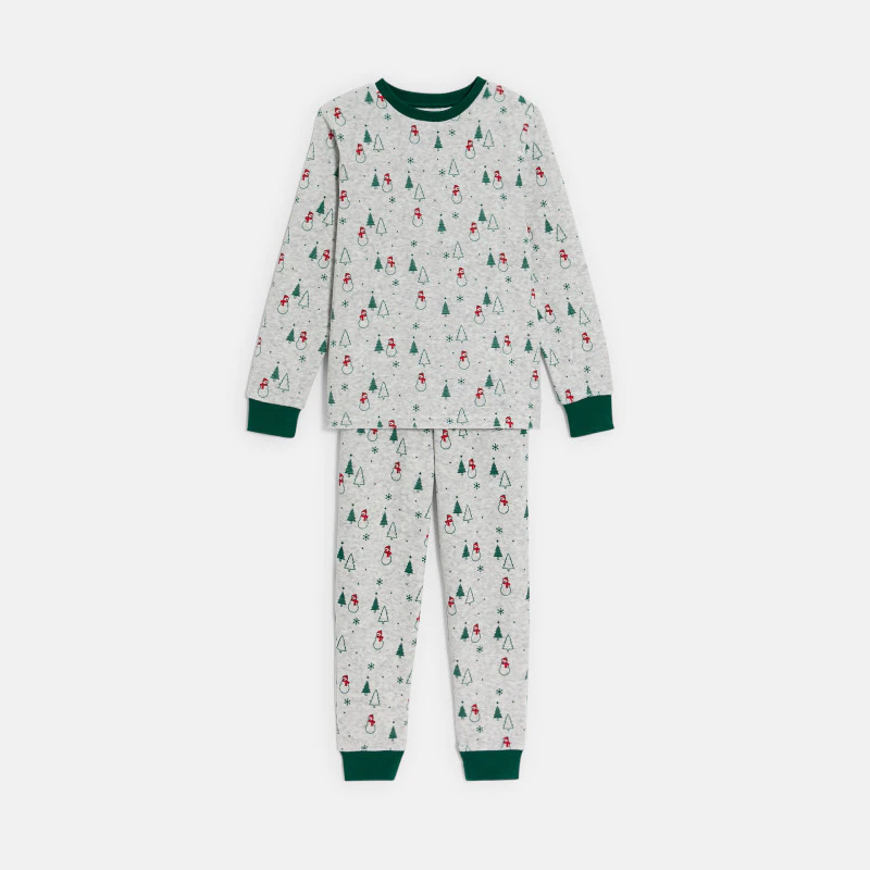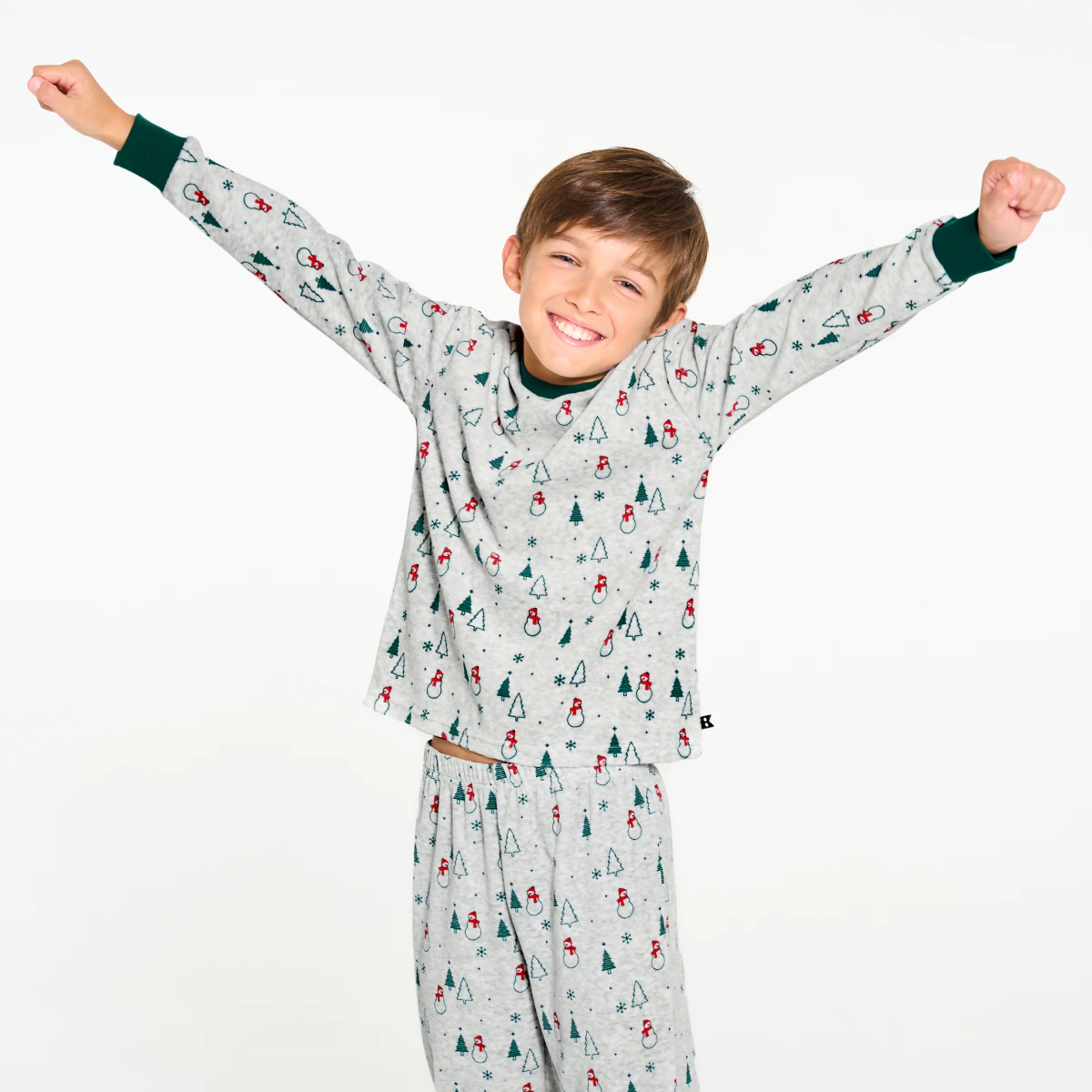 Пижама из бархата серого цвета с узором «Елка» для мальчика
