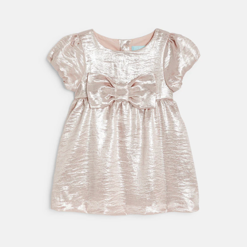 Праздничное платье с бантом розового цвета с отливом для новорожденной
