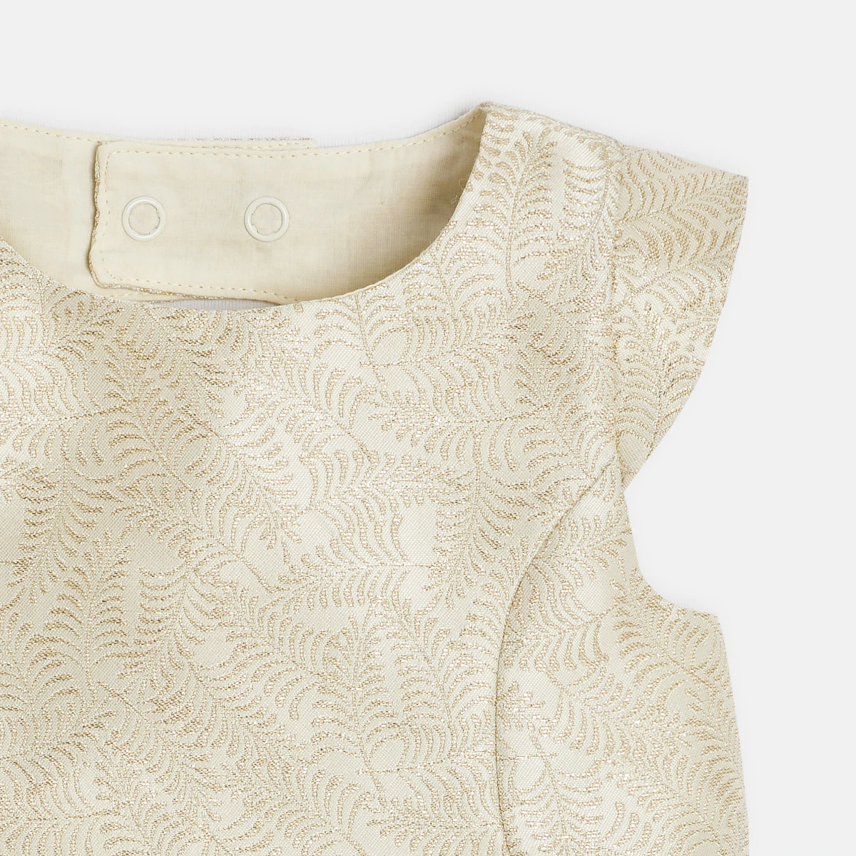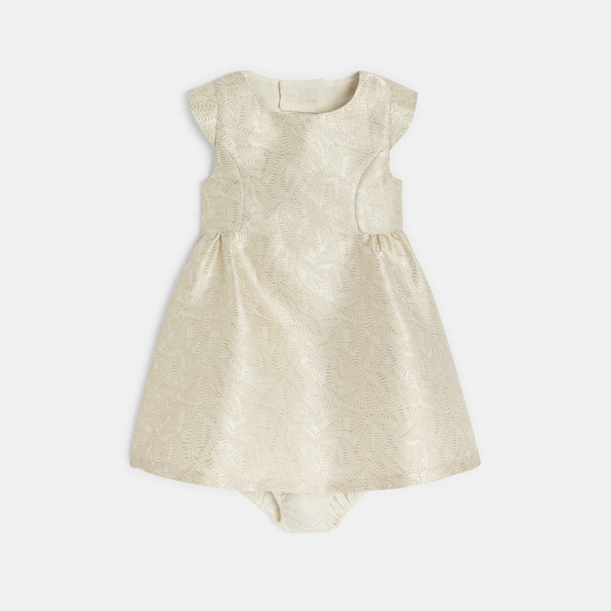 Элегантное платье из радужного жаккарда бежевого цвета для новорожденной