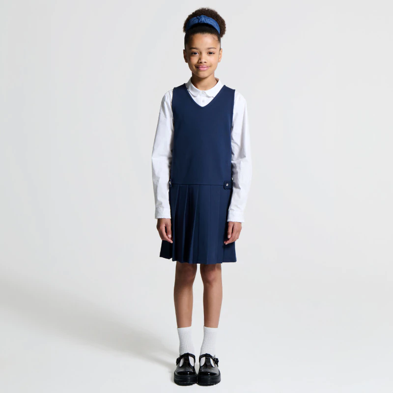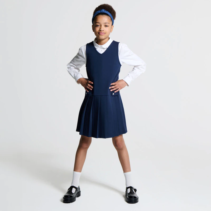 Элегантная строгая модель... в обновленном стиле ретро! Плиссированное платье снова в моде! Прямой крой. V-образный вырез спереди. Американская пройма. Низкий пояс, подчеркнутый 2 клапанами на кнопках.