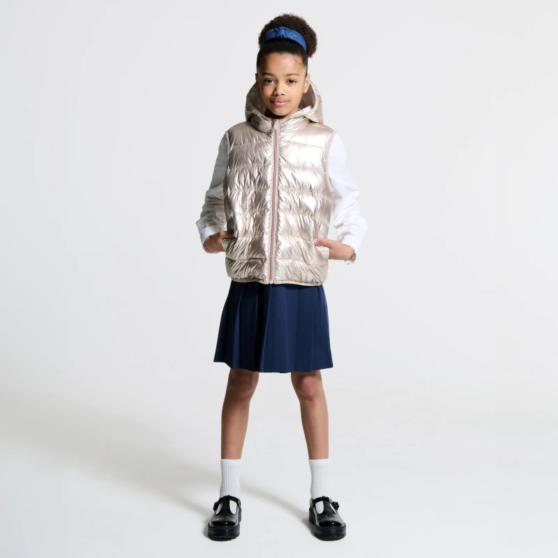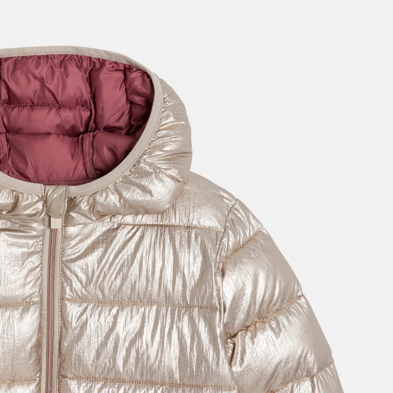 Радужный золотистый пуховик с капюшоном для девочки