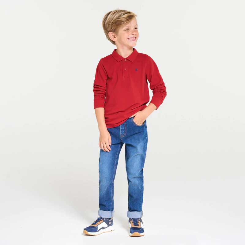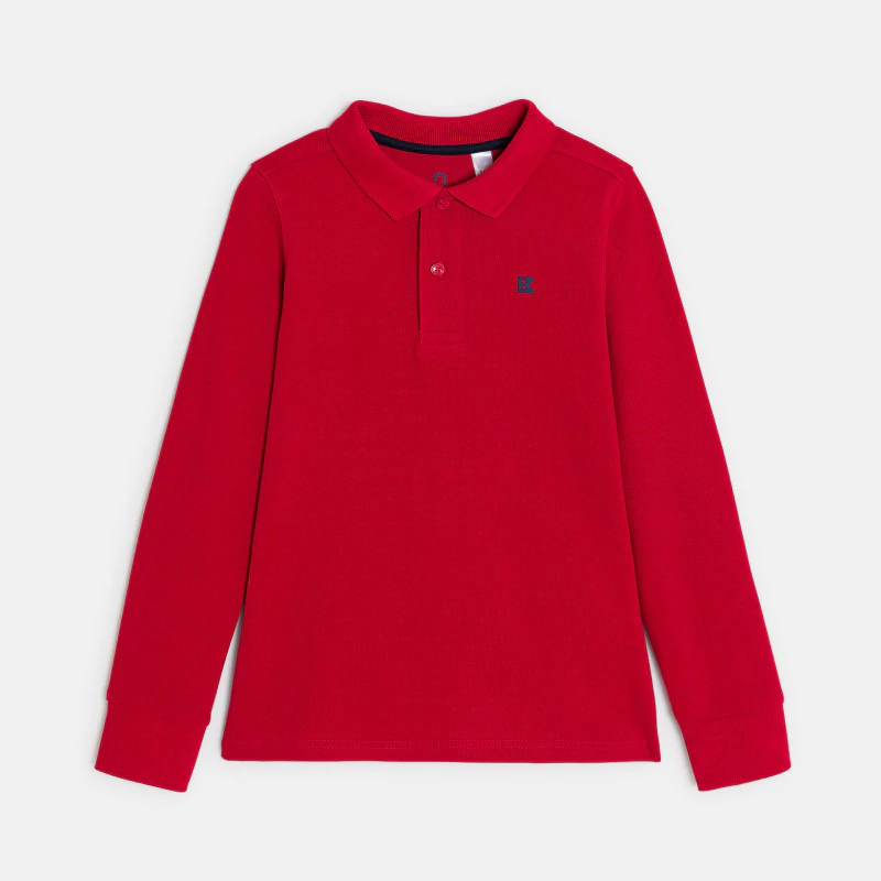 Красная рубашка поло из джерси пике с длинными рукавами для мальчика
