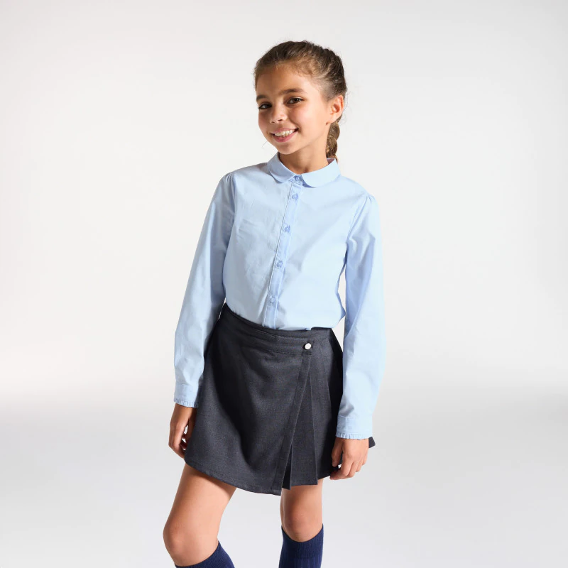 Однотонная бирюзовая рубашка с закругленным отложным воротником для девочки