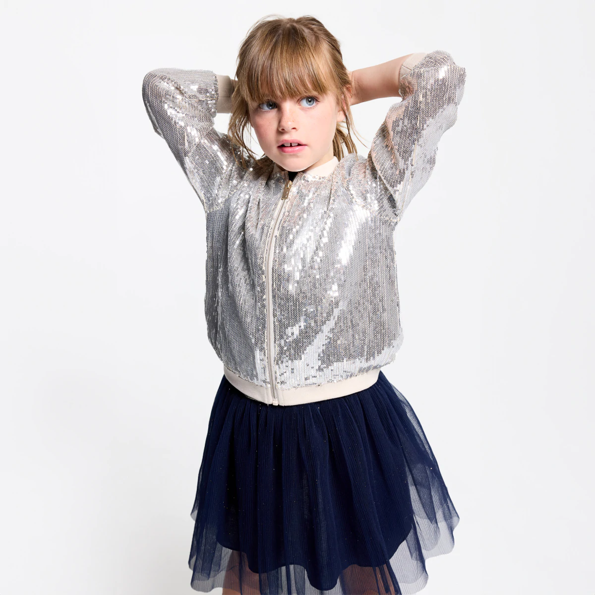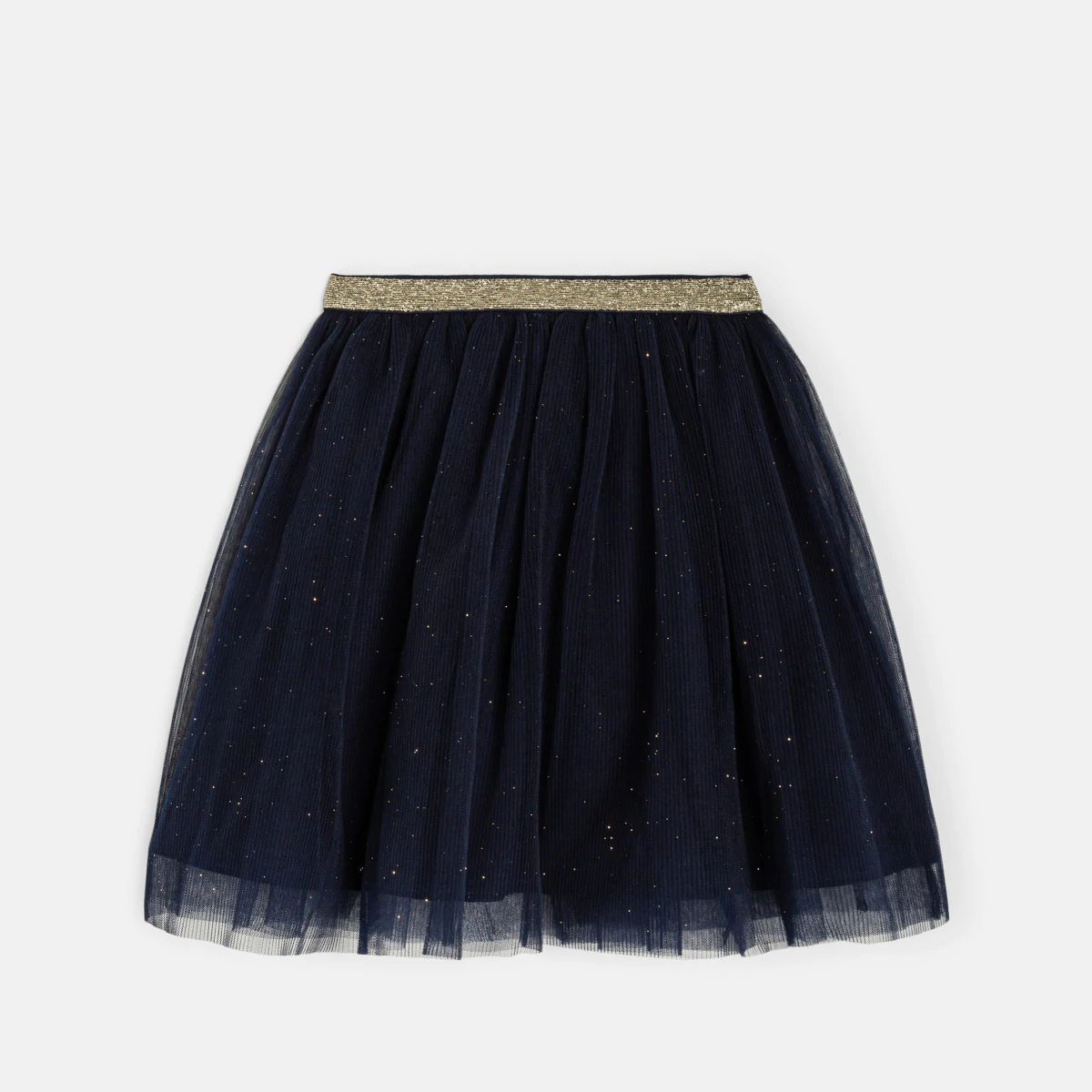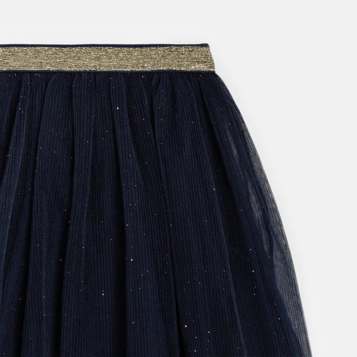 Плиссированная юбка из тюля синего цвета с пайетками для девочки