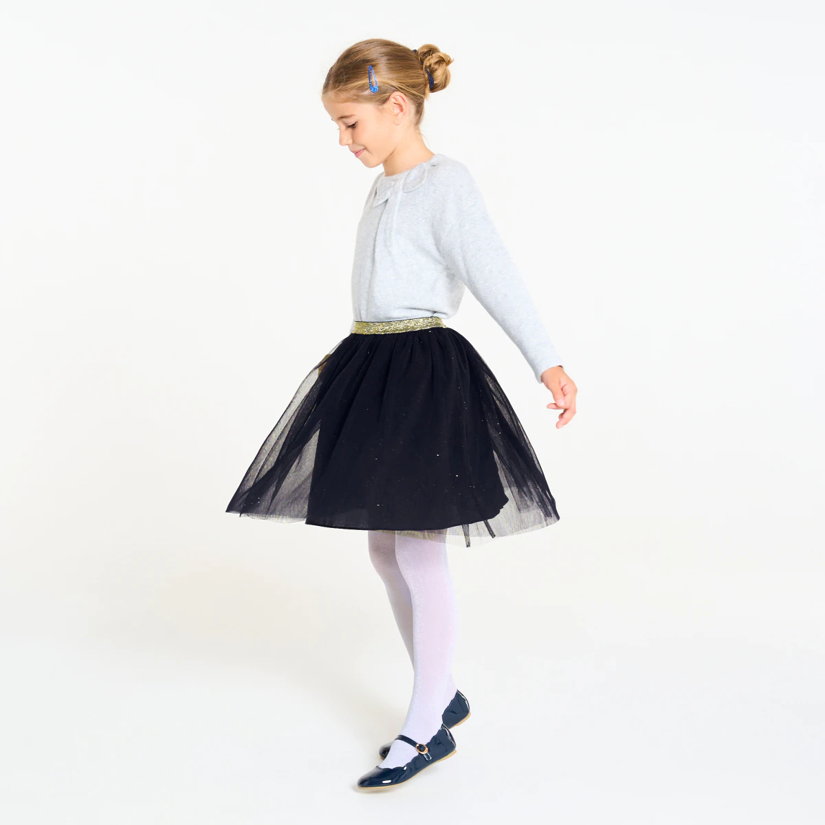 Обязательная вещь в гардеробе, для праздников и прочих радостных моментов! Каждая девочка мечтает о балетной юбке из плиссированного тюля насыщенного темно-синего цвета в пайетках. Эластичный пояс с пайетками, легко надевается. Расширяющийся книзу крой. Подкладка в тон, эффект объема. Закругленный неподшитый низ. Длина до колена.