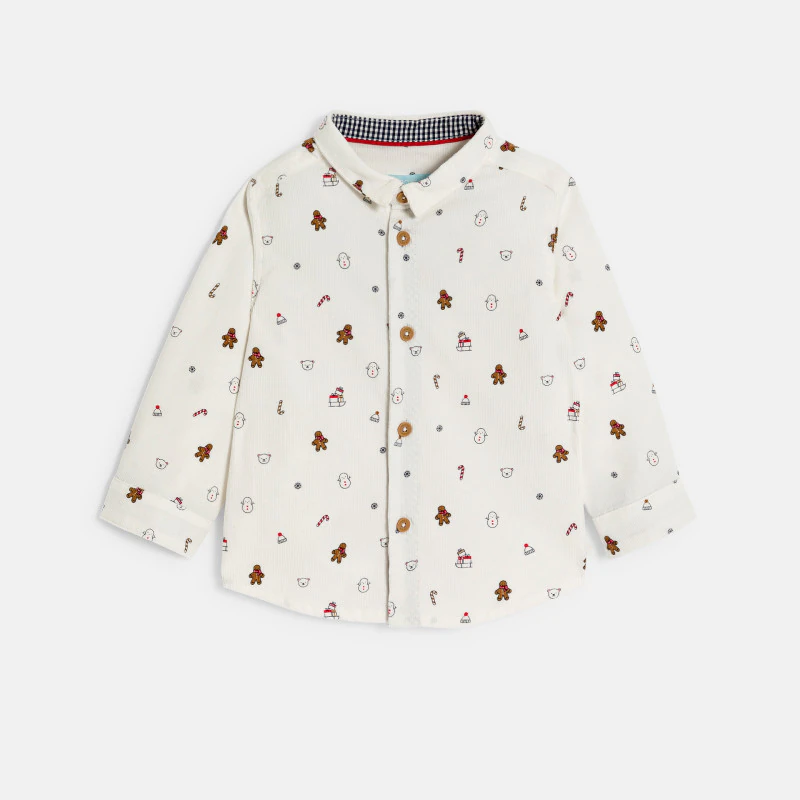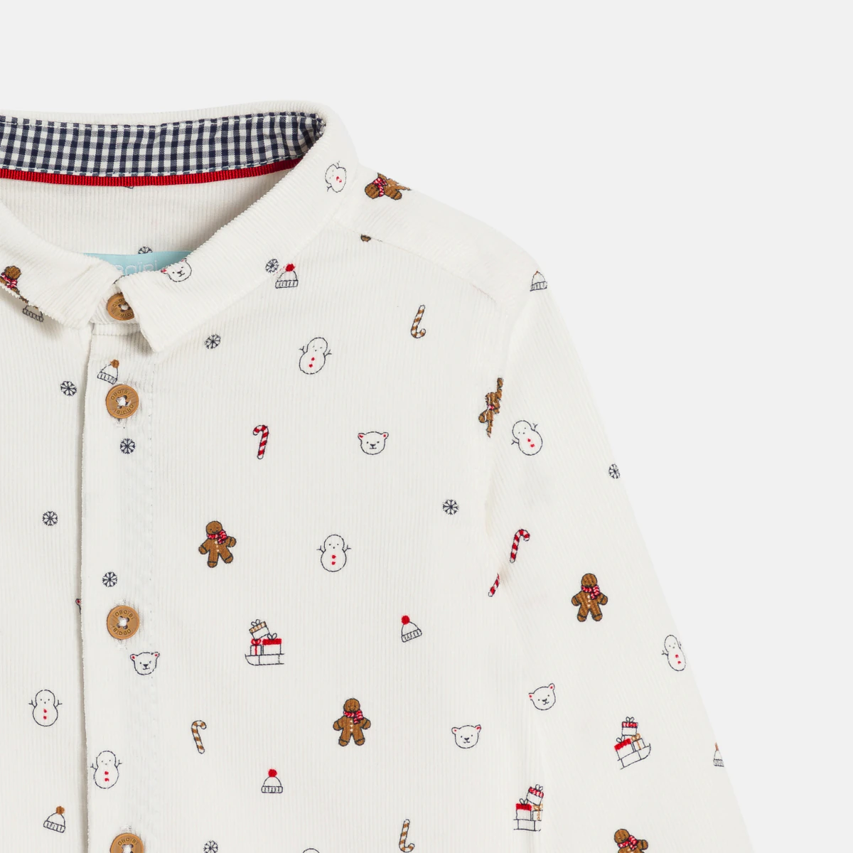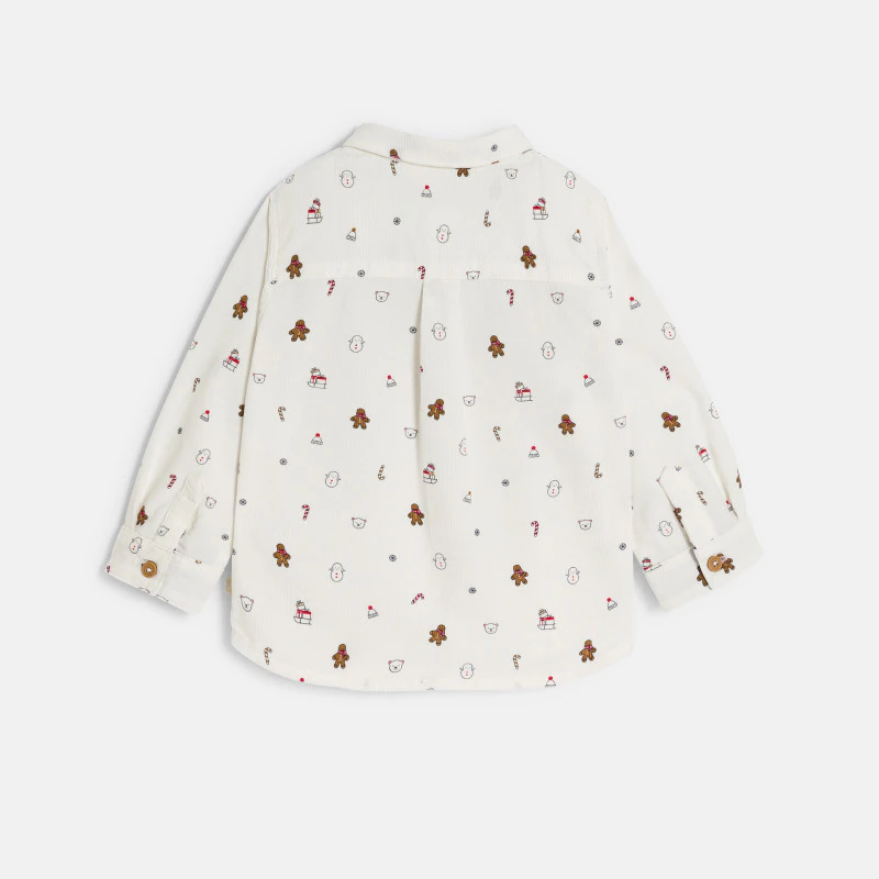 Эта рубашка на пуговицах из вельвета идеально подойдет для новогодних праздников: к вящему удовольствию мальчиков она украшена снеговиками, печеньем и мишками. Элегантная модель, которая придаст элегантности образу.