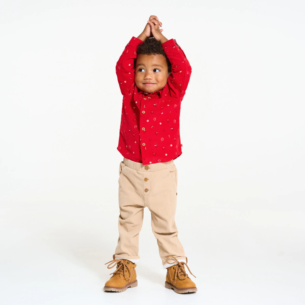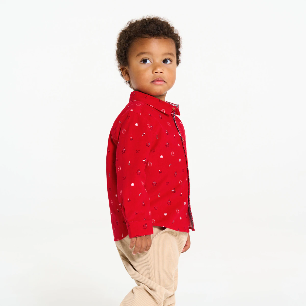 Эта рубашка на пуговицах из вельвета идеально подойдет для новогодних праздников: к вящему удовольствию мальчиков она украшена снеговиками, печеньем и мишками. Элегантная модель, которая придаст элегантности образу.