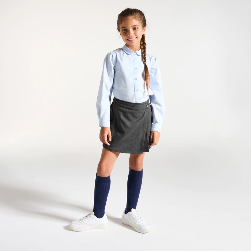 Элегантная и дерзкая модель. Девочки добавляют в свой образ нотки ретро с помощью этой короткой юбки в стиле «preppy». Расширяющийся книзу крой. Передняя часть с перекрестом. На пуговицах. Пояс на резинке сзади. Закругленный низ.