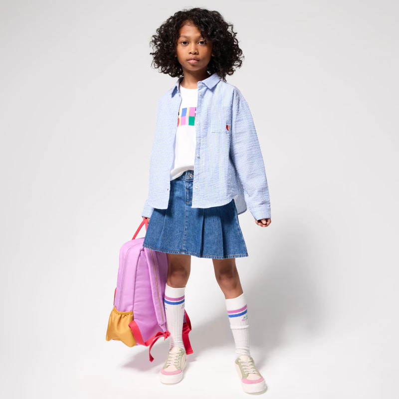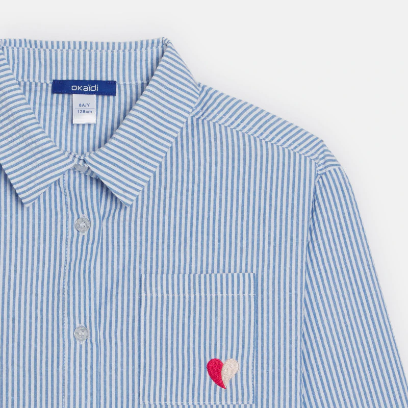 Рубашка голубого цвета в полоску с вышивкой в виде сердца для девочки