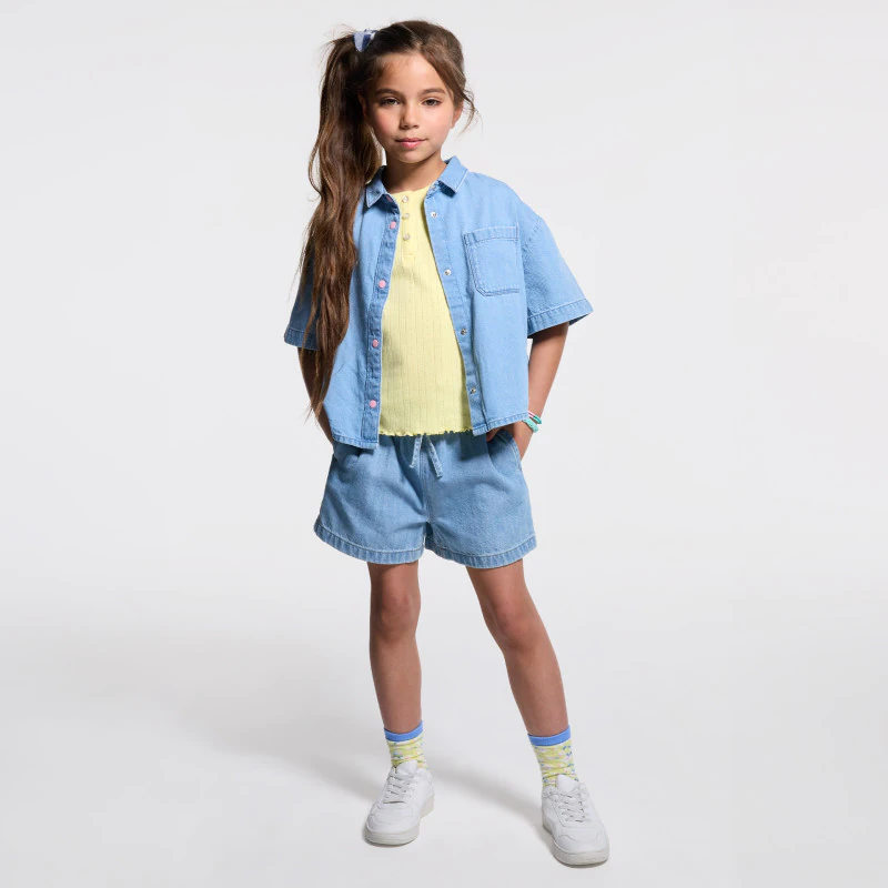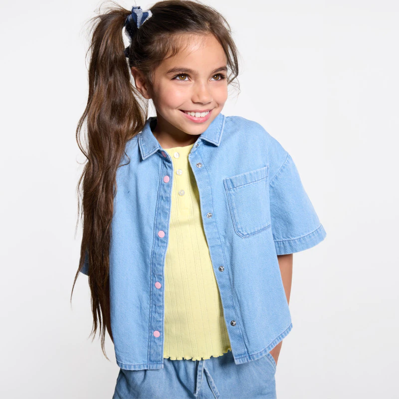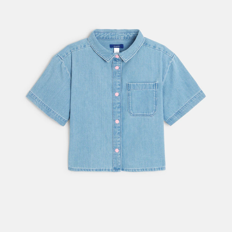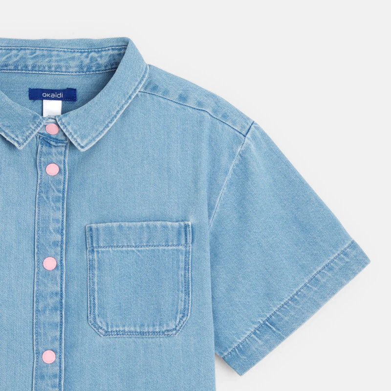 Голубая джинсовая рубашка с короткими рукавами для девочки