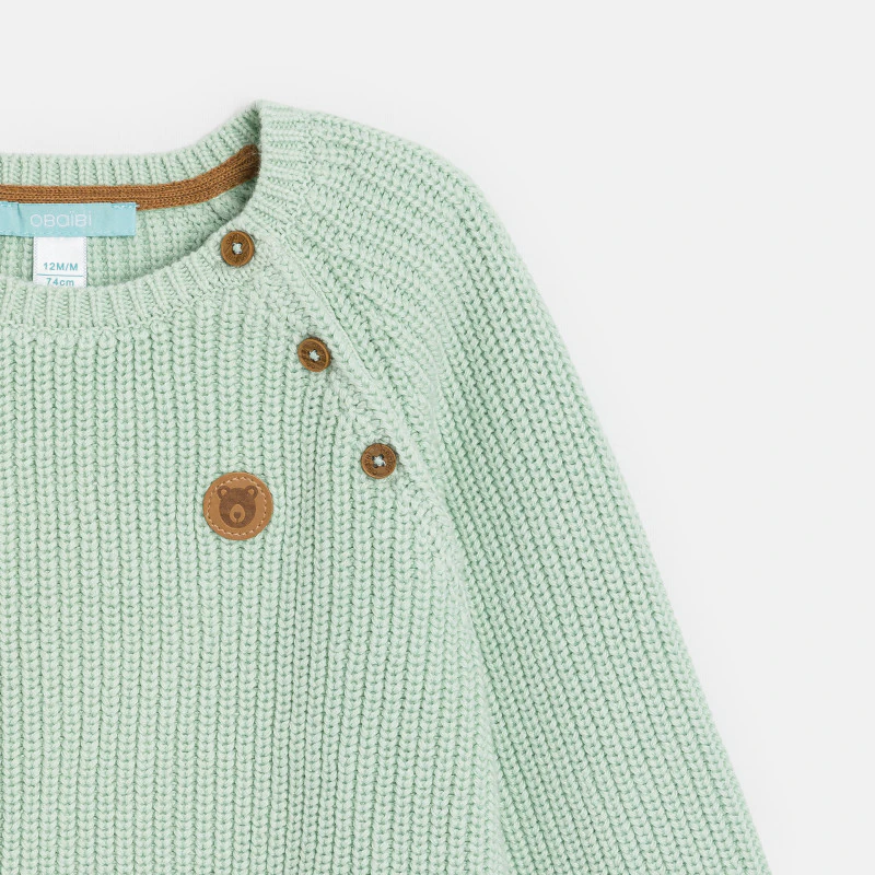 Светло-зеленый джемпер из трикотажа крупной вязки для новорожденного
